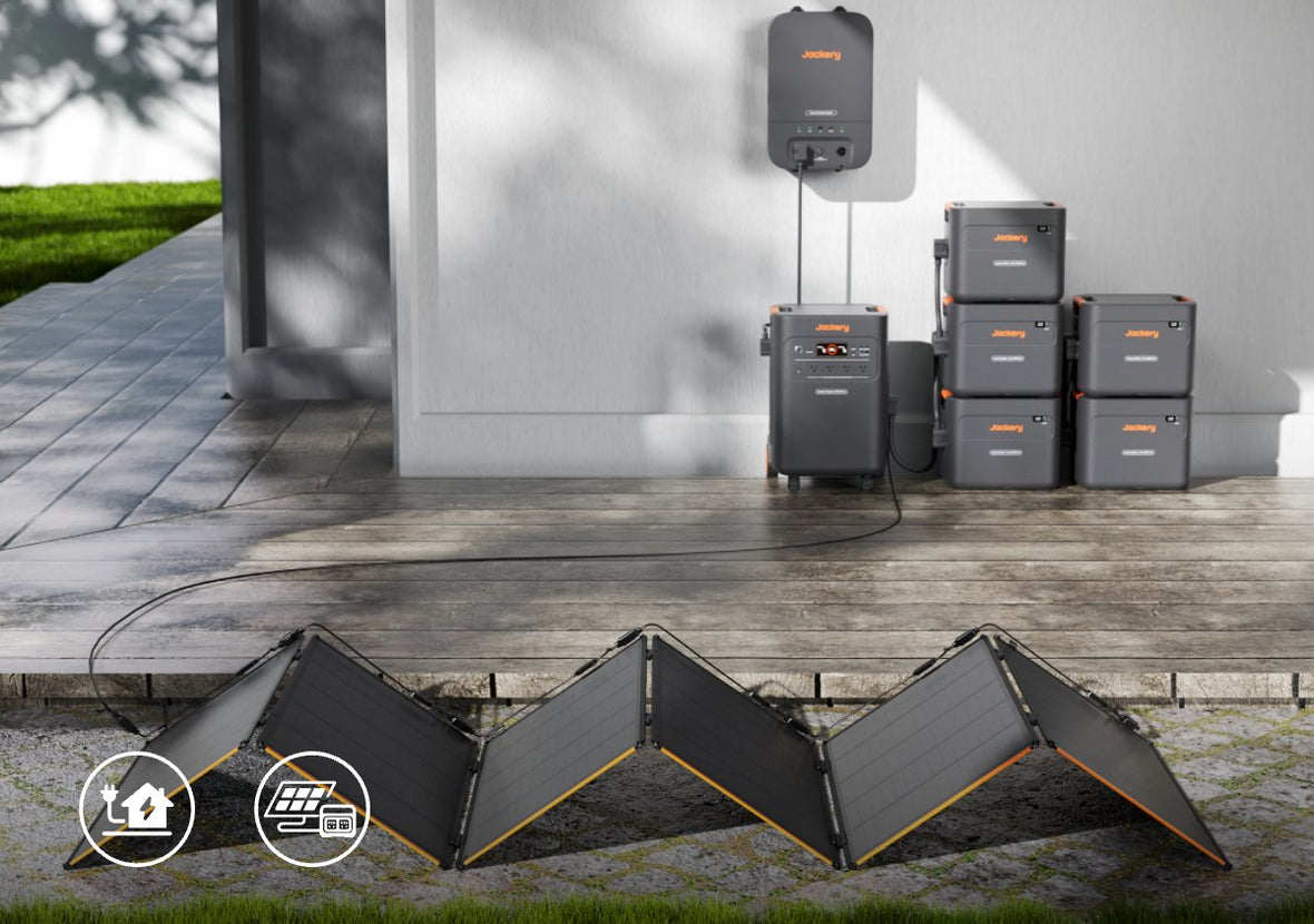 The Jackery Explorer 5000 Plus Provides Powerful, Eco-friendly Home Backup with a 5-60 kWh Capacity, Dual Voltage Output, 0 ms UPS Switching, and Seamless Compatibility with SolarSaga 500X, Delivering Efficient, Zero-emission Energy.