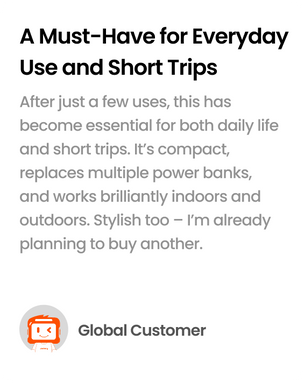 At only 5.7kg and a handy 31.1 × 20.5 × 15.7 cm, this 0.5kWh power station delivers reliable energy in a space-saving design. Small yet capable, it provides seamless backup for your outdoor and indoor essentials while remaining easy to carry anywhere.