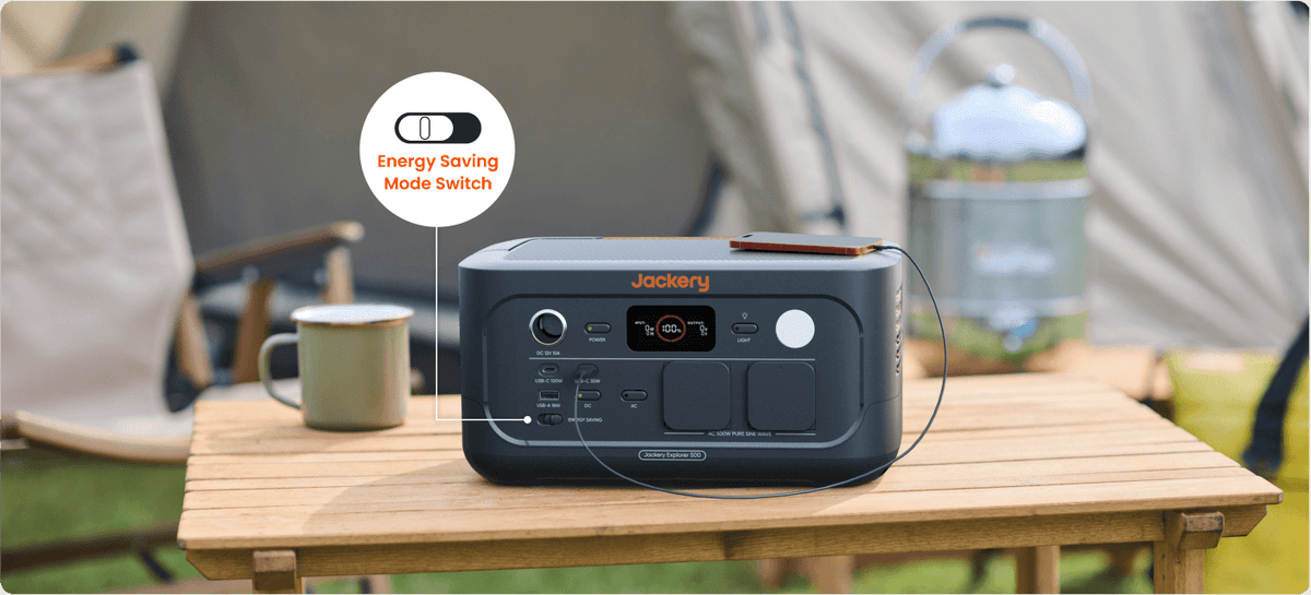 Enjoy longer run times and worry-free outings. When enabled, Energy Saving Mode automatically switches off all outputs if connected devices draw minimal power for six hours (AC ≤ 25W; USB + Car ≤ 2W). This prevents wasted battery from idle gadgets, so you’ll always have the energy for what matters – whether it’s making tea in the morning, running lights after dark, or keeping essential devices charged during an outage.