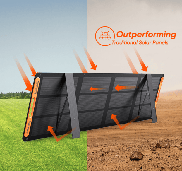 ⑨ 25% High-Efficiency 200W Solar Panel: This high-efficiency 200W solar panel delivers 25% energy conversion thanks to advanced dual-sided IBC technology, ensuring strong performance even in low light. Weighing just 6.2kg with an integrated handle, it’s designed for effortless portability without compromising power output.