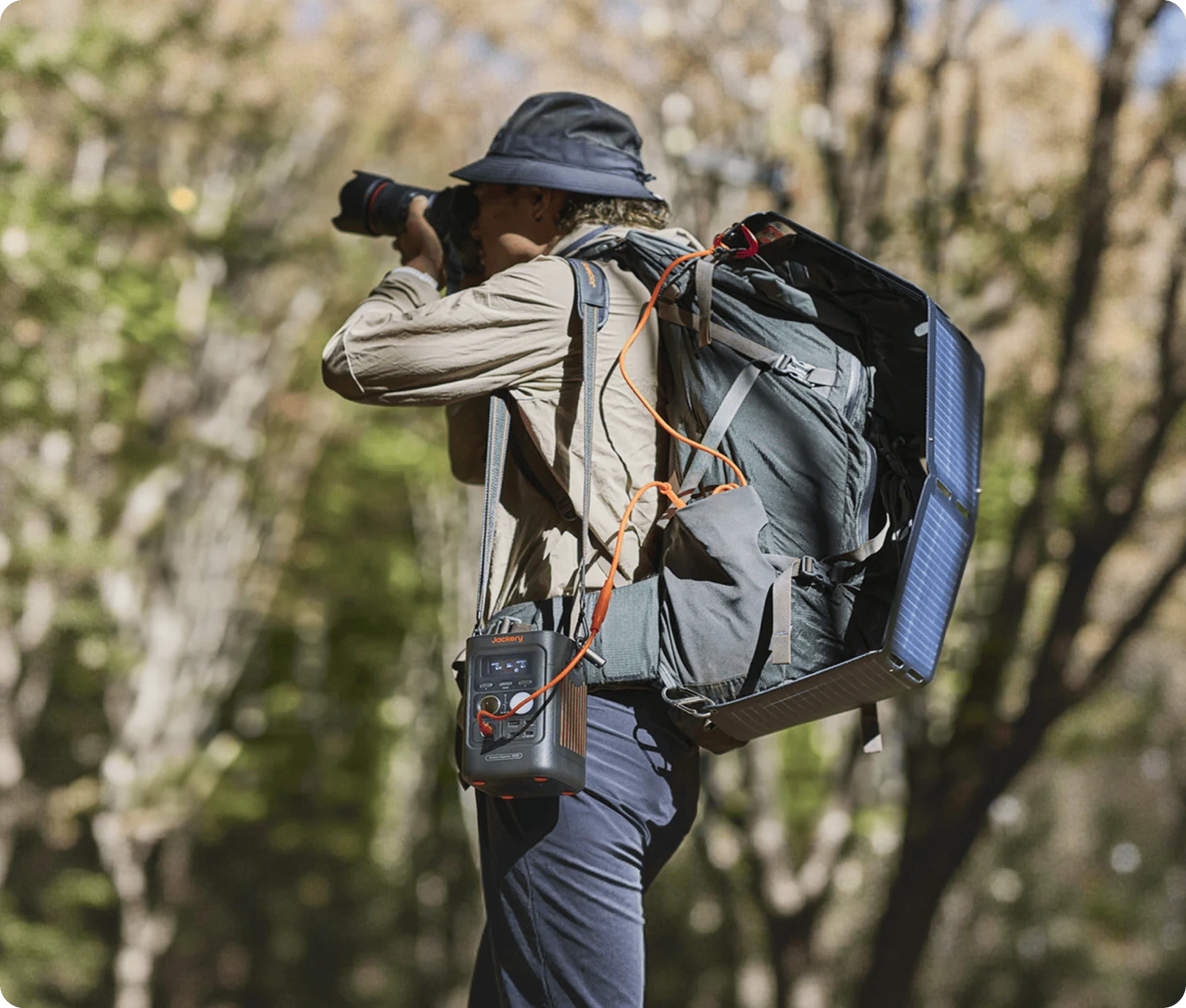 Pair the E300D power bank with the compact 40W foldable solar panel for effortless, smart replenishment wherever you go. Compact, rugged and easy to attach to a backpack or bike, it delivers steady solar energy wherever your adventure leads.