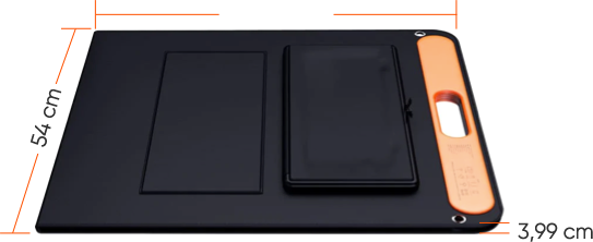 The solar panel 80W comes with a reflective carrying case. It features double-sided power generation through the reflective optical fiber, and reflective angle can be adjusted, through the sticking position of the magic tape of the carrying case.