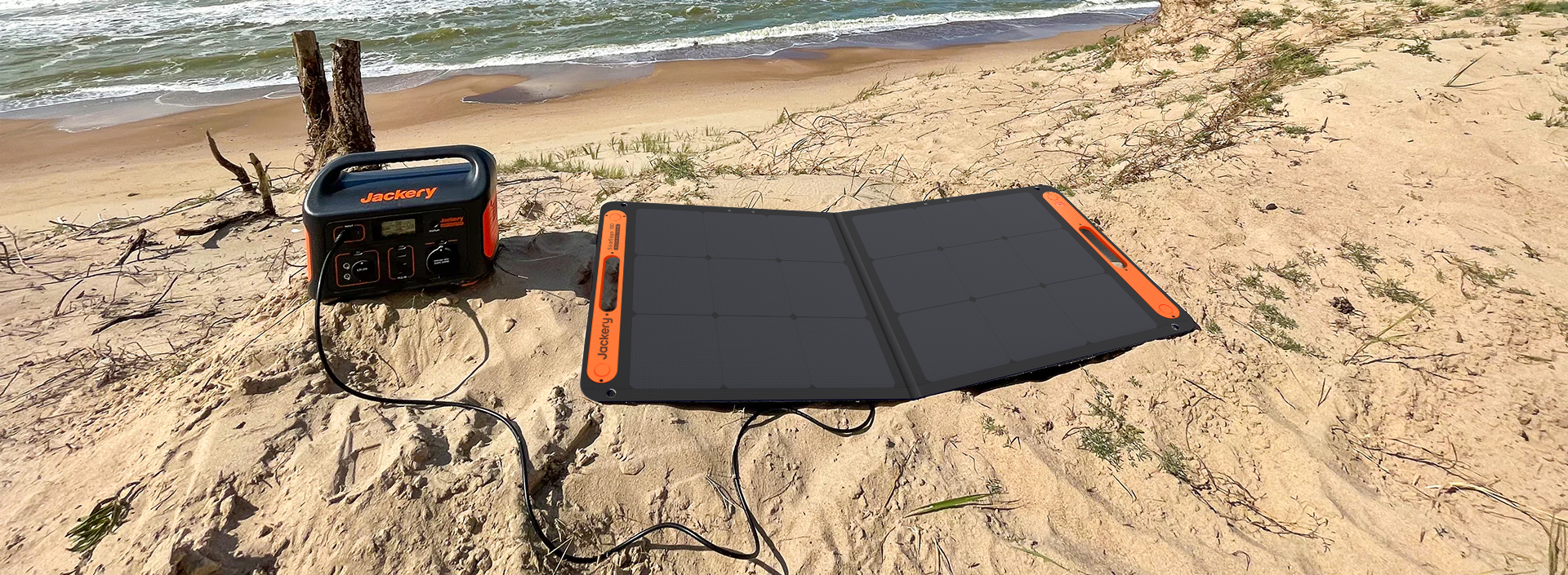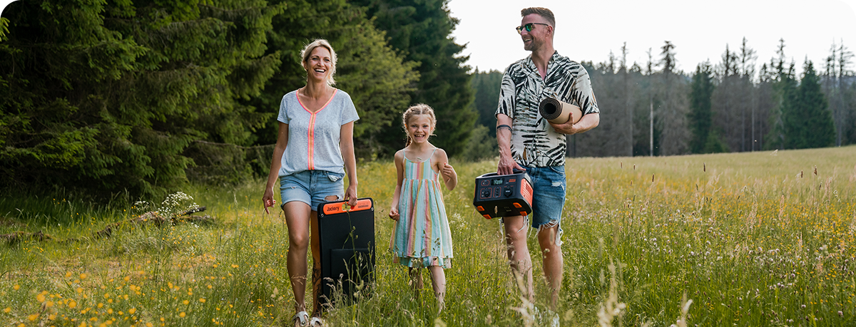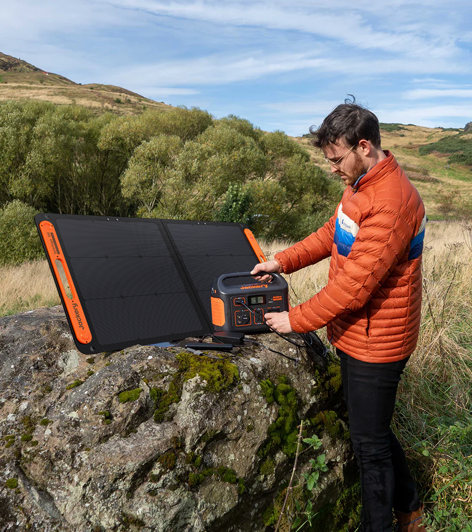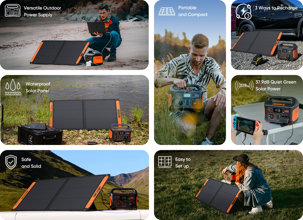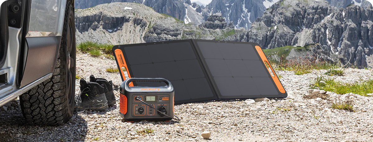 Jackery Solar Generator 500 is a solar solution that combines Explorer 500 portable power station with SolarSaga 100W solar panel. It converts sun energy by solar panels into electrical power and then stores it in the portable power station for later use. This solar generator is a reliable and clean power source for campers, RVs, or as an emergency backup.